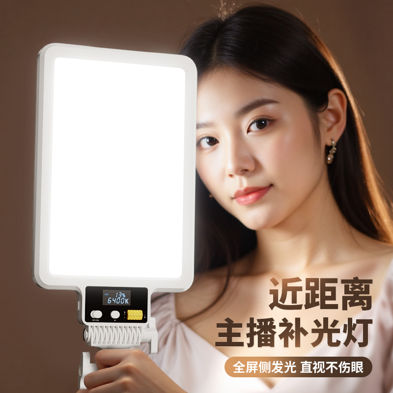 主播专用面部补光灯全屏柔光专业桌面直播补光灯设备直播间专用美颜面灯下巴灯拍照打光无影灯
