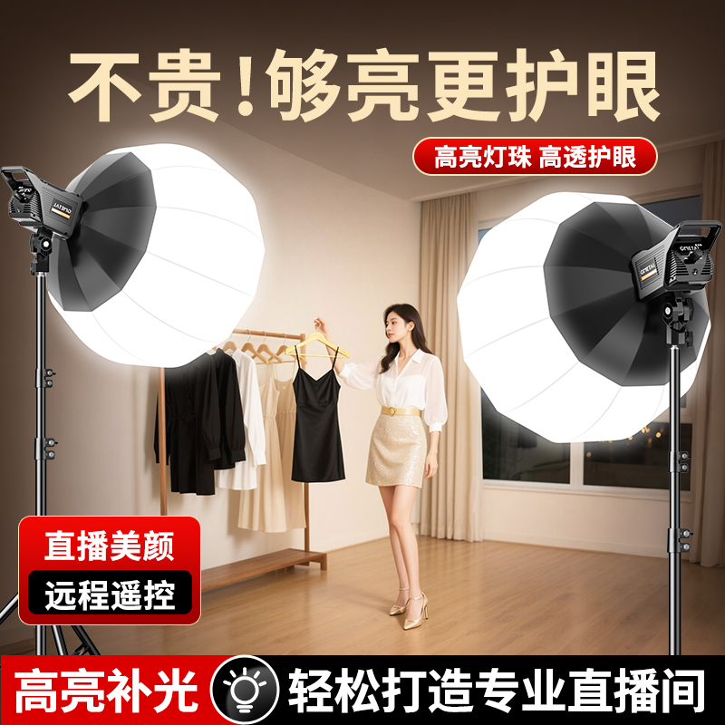 直播补光灯主播专用全套设备直播间专业摄影灯光人像美颜拍摄服装拍照室内拍美食视频深口格栅柔光箱球形影棚