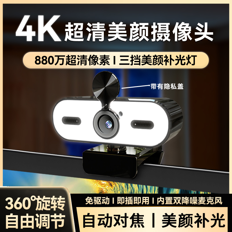 4K高清电脑摄像头家用台式机上网课专用直播usb外置笔记本摄影头