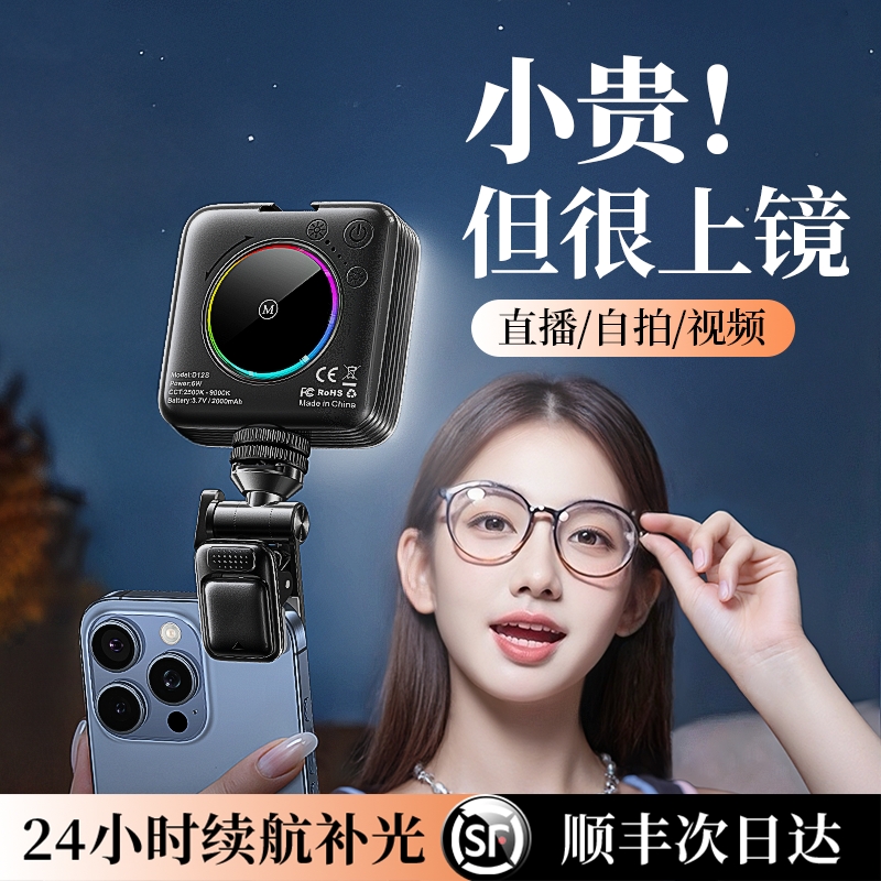 李森直播补光灯拍摄主播专用室内桌面拍照打光灯美食rgb氛围灯手机手持柔光美颜面光灯led专业相机便携式口袋