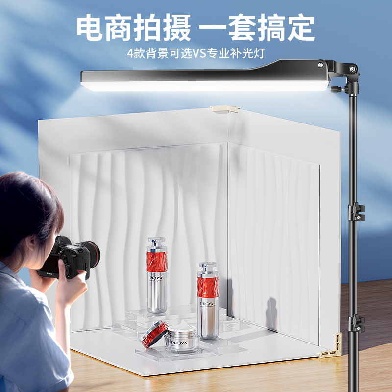 小型产品摄影棚3D立体拍照背景板静物白底拍摄道具珠宝直播补光灯箱专业拍摄台无影棚设备全套简易折叠灯箱