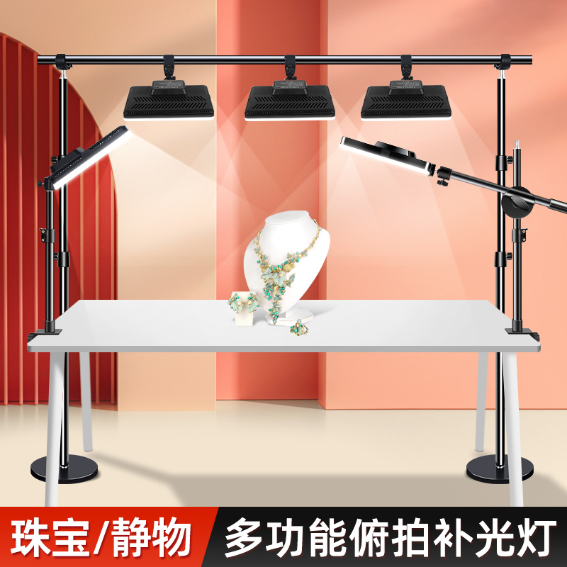 专用直播补光灯主播专业珠宝翡翠玉石首饰饰品文玩古董静物拍摄美食桌面室内打光灯聚光射灯LED摄影悬臂设备