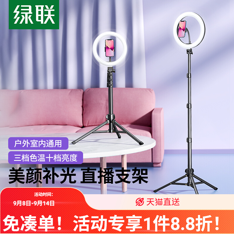 绿联直播支架手机专用带补光灯全套设备桌面拍照拍摄视频三角自拍杆适用专业主播美颜多功能落地三脚架子新款