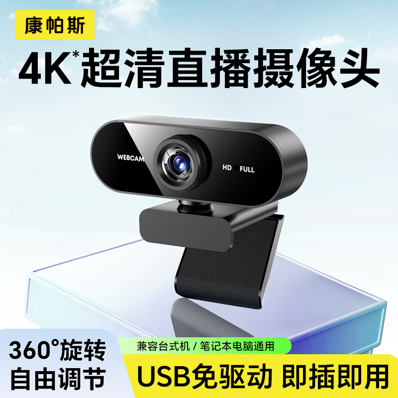 4K电脑摄像头台式家用高清直播会议网课专用一体笔记本USB免驱动