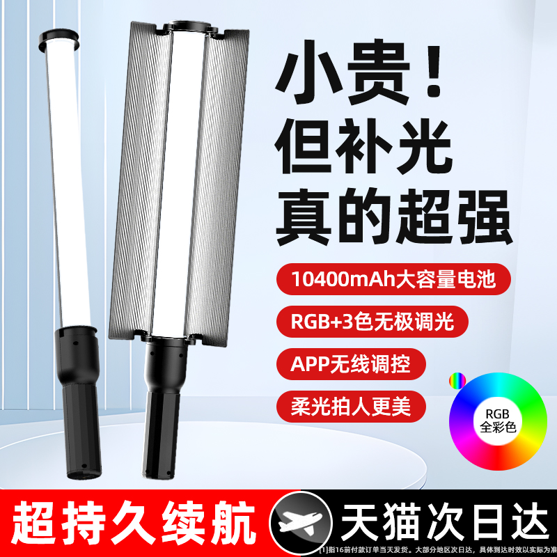 RGB摄影棒灯led手持补光灯便携式拍摄拍视频专业户外夜景人像外拍全彩打光灯直播间氛围灯下巴主播拍照灯棒
