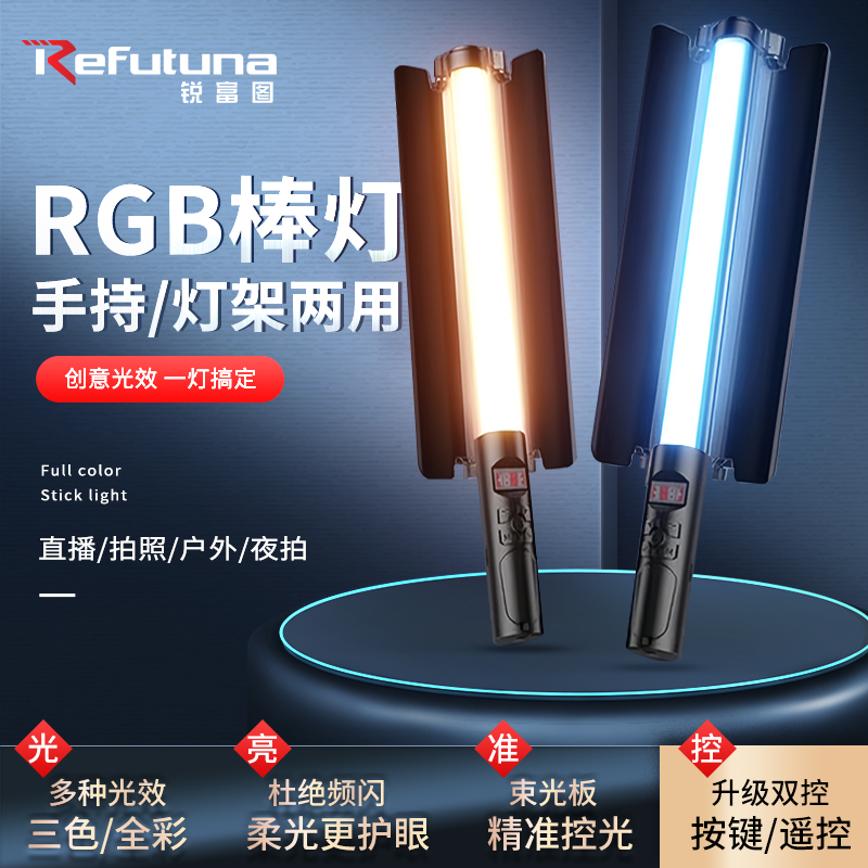 锐富图RGB摄影棒灯手持打光彩色全彩便携冰灯外拍视频直播美颜人像夜景氛围室内发丝下巴颈纹拍照拍摄补光灯
