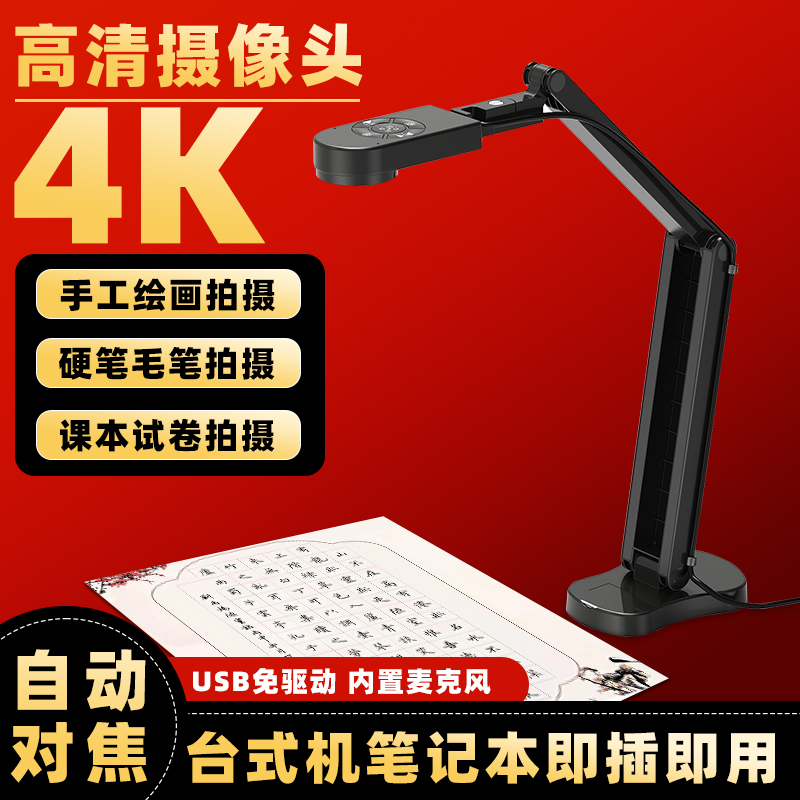 顺丰包邮4K高清电脑摄像头自动对焦网课教学直播USB带麦克风书法
