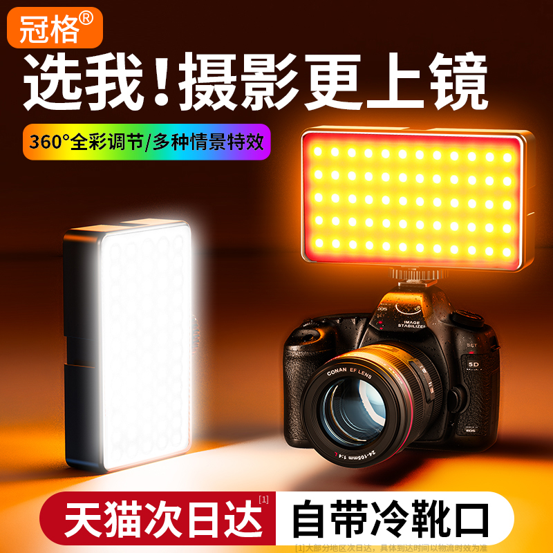 RGB全彩单反相机补光灯专业便携式小型充电led拍照摄影灯户外手持美食人像拍摄像抖音自拍直播美颜热靴口袋灯