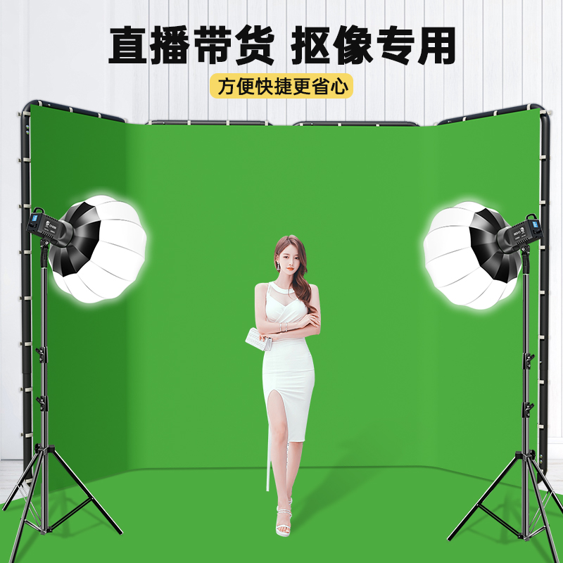 绿幕背景布大型抠像绿布背景架便携式幕布加厚绿色专业直播间背景墙抠图摄影拍摄伸缩支架地拉幕视频特效设备